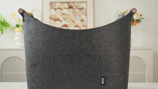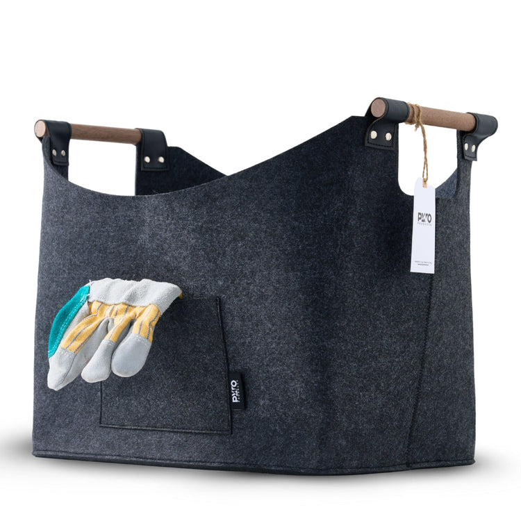 Tout voirUn salon devient rapidement encombré à cause des couvertures, jouets ou objets éparpillés. Le panier de rangement PyroProducts® rétablit immédiatement l'ordre et le style. Fabriqué en feutre robuste et stable avec une capacité généreuse de 60 litres, ce panier de luxe offre de l'espace pour les couvertures, jouets, magazines, linge et, si désiré, aussi du bois de chauffage. Les poignées en bois assurent un transport confortable et sûr, même avec un contenu de 20 à 30 kilogrammes. La couleur anthracite et le design épuré s'intègrent dans tout intérieur moderne.